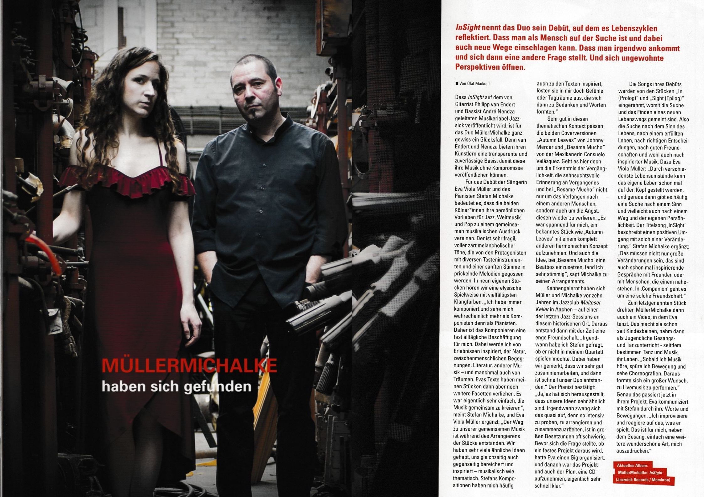 „Songpoesie würde ich nennen, was die beiden aus Köln stammenden Profis hier vorlegen. Es gibt viele weiche, elegische Melodien, gesungen wie gespielt… Die alte Rollenverteilung zwischen Sängerin und Begleitung ist aufgehoben, beide agieren auf Augenhöhe und haben sich gegenseitig inspiriert… Ihre sanfte Stimme passt gut zu ihrem klaren, ungekünstelten Stil. Stefan Michalke setzt nicht nur den Flügel, sondern jeweils passgenau auch Rhodes Piano, Synthesizer und Akkordeon ein. Auch er agiert eher zurückgenommen, mit einem ausgeprägten Sinn für Phrasierung. Ein außergewöhnliches Duo mit ehrlichem Ausdruck, das seinen eigenen Weg gefunden hat.“
